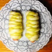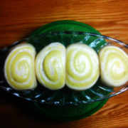 白面团:面粉、水、酵母、绿面团:面粉、菠菜汁、酵母、花生酱。