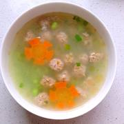 青豆、肉糜、胡萝卜、莲藕、葱、姜末、香油、鸡精、盐、胡椒粉、淀粉。