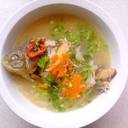 鲫鱼、白萝卜、胡萝卜、香菜、香葱、胡椒粉、油、盐、鸡精、姜片、料酒。