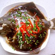 多宝鱼、姜丝、葱、青椒丝、红椒丝。