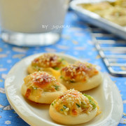 面粉、酵母、芝士丁、青椒、火腿、盐。