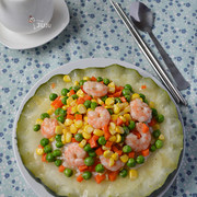 鲜虾、冬瓜、豌豆、玉米、胡萝卜、生粉、盐。