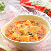 嫩豆腐、亨氏番茄酱、肉沫、姜、葱、胡椒粉、盐、生抽、淀粉。