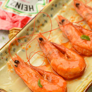 鲜虾、亨氏番茄酱、姜、白糖、白醋、淀粉、料酒、胡椒粉。