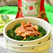 西兰花、培根、亨氏番茄酱、蒜头、盐、鸡粉。