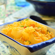 土豆、亨氏番茄酱、葱、蒜、生抽。