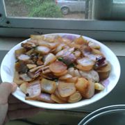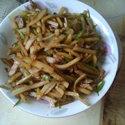 土豆、瘦肉、葱、青辣椒、花椒、蒜、盐、酱油、料酒、五香粉。