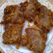 腿心肉、蒜头茸、番薯粉、面包、盐、酱油。