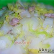 大白菜、葱、蒜、肉片。