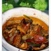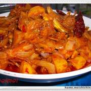 大葱、辣椒糊、指天椒、姜、咖喱粉、小葱、蒜米、亚叁膏、江鱼子、土豆。