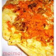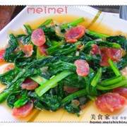 隔夜白饭、青菜、萝卜丝、青瓜丝、香肠、鸡蛋、肉末、自制辣椒糊。