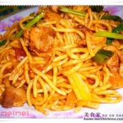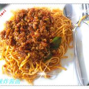 黄面、肉末、干虾米、自制辣椒糊、葱 蒜、辣椒酱、咖喱粉、咖喱叶。