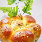 高粉、低粉、南瓜泥、奶油、迷你香肠、芝士片、水、酵母、芝麻。