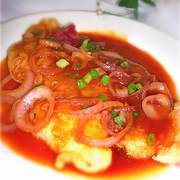 龙利鱼、面粉、葱花、葱花、辣椒酱、番茄酱、酸甜酱、糖。