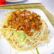 面条、肉末、冬菜、蒜米、包菜、鱼丸、自制虾米辣椒膏、辣豆瓣酱、生抽、鸡精粉、黑胡椒粉、淀粉。