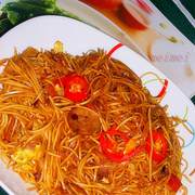 筒仔面、火腿片、香肠、红辣椒、蒜米、小葱、淀粉、水、酱油、盐、老抽。