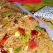 米粉、蟹柳、腊肠、干辣椒、鸡蛋、芫茜。