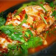 石斑鱼、辣豆瓣酱、葱、蒜、芫茜。