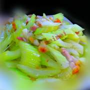 芹菜、猪肉片、小葱、蒜米、老抽、蚝油、鸡精粉。