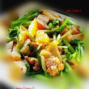 猪肉、冬菇、蒜米、小葱、蚝油、鸡精粉、老抽。