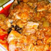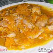 马鲛鱼、大葱、小葱、蒜米、咖喱酱。