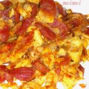 鸡蛋、香肠、小葱、蒜米、洋葱。