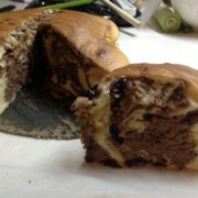 低筋面粉、鸡蛋、细砂糖、牛奶、色拉油、泡打粉、徳芙黑巧克力。