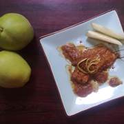 白雕鱼肚排、早酥梨、生姜丝、盐、糖、醋、酱油、味精、胡椒。