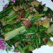 油麦菜、豆豉棱鱼罐头、糖、陈醋。