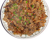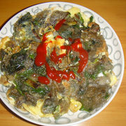 杏胞菇、肉未、面粉、小葱、鸡蛋、黑芝麻。