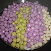 大米及糯米混合粉、波菜汁、紫甘篮汁、山药、白砂糖。