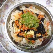 虾子面、香肠、鸡蛋、紫菜、生菜、辣椒酱、胡椒粉、家乐鸡粉、麻油、糖、酱油、盐。