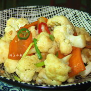 花菜、胡萝卜、小葱、青红椒、盐、鸡精、蒜末。