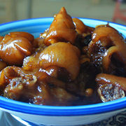 猪蹄、黄豆、干辣椒、冰糖、白酒、八角、桂皮、老抽、生抽、米醋、姜、蒜、盐。