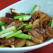 五花肉、蒜苗、大蒜、姜、料酒、生抽、老抽、白糖、蚝油、鸡精、盐。