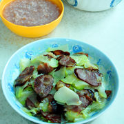 自制香肠、青菜头、生抽、鸡精、大蒜、盐。