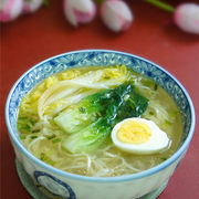 面条、鸡蛋、娃娃菜、小油菜、小葱、高汤、香醋、酱油、白糖、花椒油、香油、大蒜、盐。