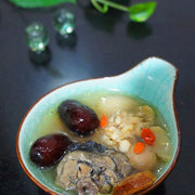 乌鸡、百合、红枣、薏仁、山楂、桂圆、杞枸、姜片、盐。