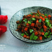 猪瘦肉、四季豆、胡萝卜、淀粉、料酒、生抽、老抽、白糖、大蒜、姜、鸡精、盐。