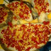 阿拉斯加深海大比目鱼、大蒜 剁椒酱。