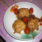 肉末、嬾豆腐、鸡蛋、面粉、生粉、酱油、蚝油、姜末、葱。