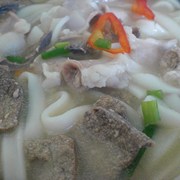 肠粉、猪肝、河粉、姜片、葱花、酱油、蒜茸、花生油。