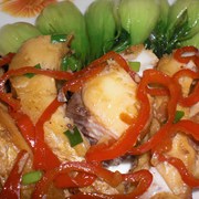 草鱼尾巴、淀粉、白糖、酱油、葱段、醋、香油。