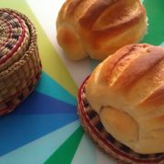 高筋面粉、低筋面粉、砂糖、盐、酵母、黄油、牛奶、蛋黄、葡萄干。