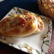 高筋面粉、水、糖、盐、奶粉、酵母、白油、百里香、橄榄、培根、洋葱。