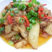 茄子、咸鱼、红辣椒、蒜米、葱、郫县豆瓣、盐、酱油。