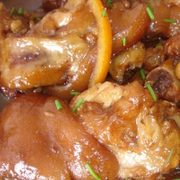 猪蹄、葱伴侣豆瓣酱、生抽、老抽、葱、姜、冰糖、花椒、大料、干辣椒、料酒。