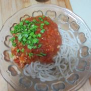 圆面条、番茄、洋葱、鲜虾、鸡胸肉、胡萝卜、黄瓜、盐、十三香、番茄沙司。