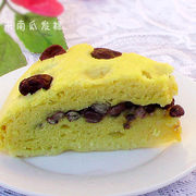 玉米粉、面粉、南瓜、红豆馅、葡萄干、红枣、白糖、发酵粉。