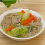 莜面、猪瘦肉、白菜、胡萝卜、油、盐、生抽、料酒、葱、姜、蒜。